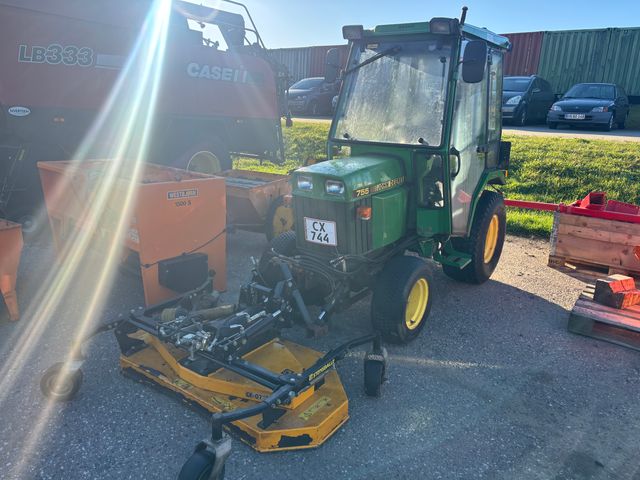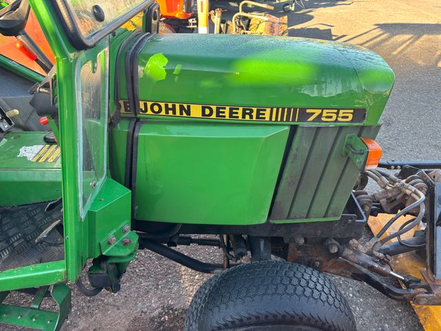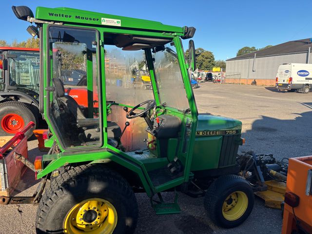 Fin og velholdt John Deere 755 Højre dør mangler. Klipperbord og kost er ikke afprøvet.