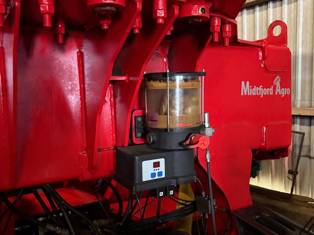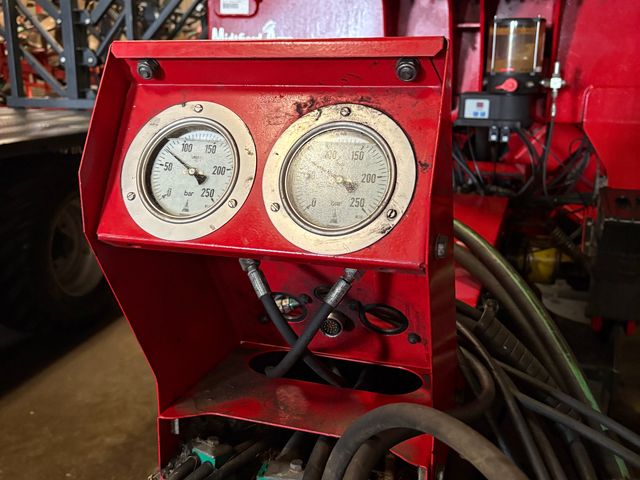 Kongskildes store 12.3 mtr. Skårlægger med bånd. Crimper i fuldbrede Den gode hydraulisk marktryks regulering. Styrbar bagaksel med tvangsstyring 3.5. Mtr. Frontskårlægger som er trukket. Bagerste er med bånd som klappes op og ned via styring. Kører Ls hydraulik til båndene. Har slået ca. 9600 ha og 680 timer. Det koster 25.000kr at klargøre den med olie skift og skidt af sliddele.