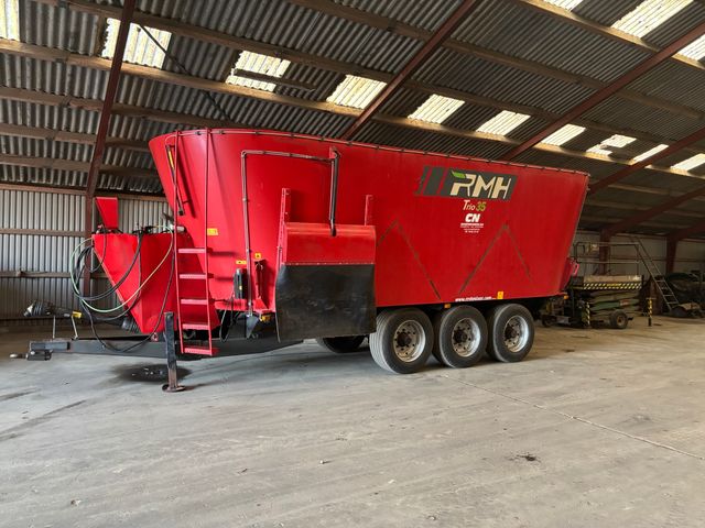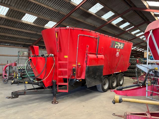Reborn på vor værksted - Nye trekanter mont. - Snegle/knive/service mm. ok - Kofanger med led trafik lys - Hydr. støtteben - Overlappende special snegle ( RMH blande teknik ) - Indstillige modknive 4 stk. - 2-Trins reduktionsgear med kabel til traktor - Heavy Duty Vertikal planetgear - Kraftig affjedret undervogn - Hydr. bremser på forreste og bagerste aksler - Drejbar ( fri løb ) på forreste og bagerste aksel - Nøjagtig vejesystem 15.15 - 112 cm. brede låger højre for / venstre for og i bagende med låge indikator - Kraftig gummi med lærred ved låger - El styring af div. hydr. funktioner - 385/55 X R 22,5 hjul - Drejbar prodsøje træk - Manuel centralsmøring af diverse smøre nipler - Ring for mere info Tom 20301365 / 73820218 - ta@cn-maskinfabrik.dk