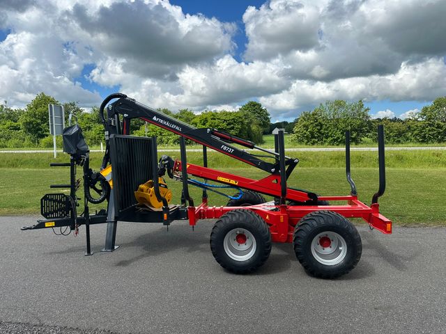 FTG FB100 har en centralbjælkeramme med bevægelig rammeforlængelse, lige trækstang med roterende trækvægt Ø50 mm, hydraulisk rammestyring, solid krankonsol, hydrauliske teleskopiske støtteben, værktøjskasser, bageste støttebukke med integrerede LED-lygter og nummerpladelys, 4 bukke med 8 stolper og 500/50-17 hjul. Læsselængde med rammeforlængelse op til 4,6 m, Bremser på 1 aksel, stå platform , LED arbejdslys, motorsavsholder, krydsventil med El on/of. FB73T skovbrugskranen har en rækkevidde på 7,3 meter. Den er udstyret med et knækled og en teleskoparm med en indvendigt placeret cylinder for endnu bedre funktionalitet og har et løftemoment på 70 kNm (brutto). Monteret med FTG FB73T-kranen er som standard udstyret med en 4-tons rotator, FB190WF grab, . Rotatorophænget leveres som standard med pendulbremse. Kranen er udstyret med med 4 cylindre og har et svingmoment på 16 kNm.