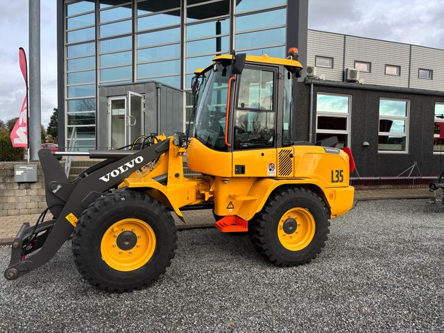 Fabriks ny Volvo L 35 HS klar til levering - 405/70 X R20 dæk - Volvo 4 cyl. D3.3H motor - Brændstoftank 84 ltr. - 2 gear / 30 km/t - Manuel hastigheds ventil - Arbejdeslys led 2 x 2 - Halogen kørelys - Rotorblink - Justerbar ratstamme - Ventilationsanlæg - Volvo Z redskabsskifte - Lastaffjedering af bom - Alle funktioner i joystik - Egen vægt 6200 kg. - Ring for mere info - Erling 73820212 - es@cn-maskinfabrik.dk