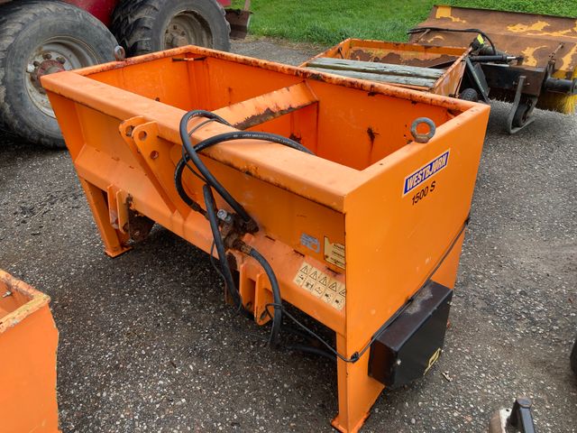 Saltudlægger i 150 cm arbejdsbredde, mgd. reg i bunden virker, men hydraulisk reguleringen sidder fast. Rumindhold ca. 600 liter.