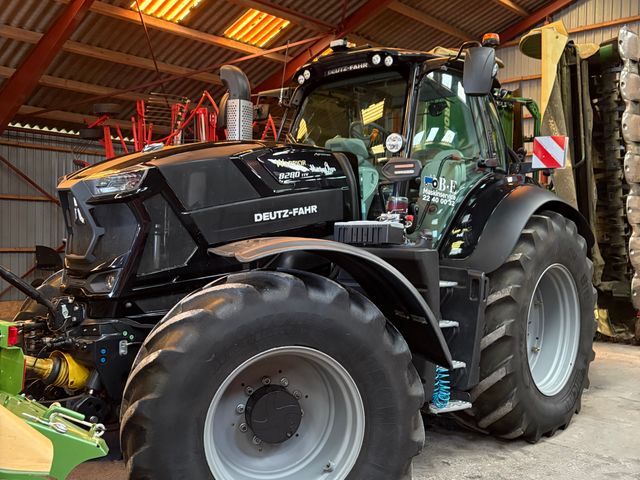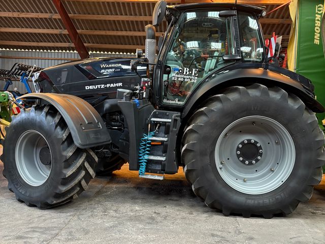 Rigtig flot Deutz Fahr 8280TTV i Panther Black MED ALT I UDSTYR DER FINDES TIL EN DEUTZ FAHR. Kørt ca. 4000 timer Front pto Dobbelt fremført hydraulik med fri retur. Isobus for og bag Ekstra lys på spejle Luft slange rulle i bag og udtag til luft ved køler Ekstra brede forskærme Centralsmøring RTK gps og meget mere. Ring for mere info og pris, da traktoren kører løbende.