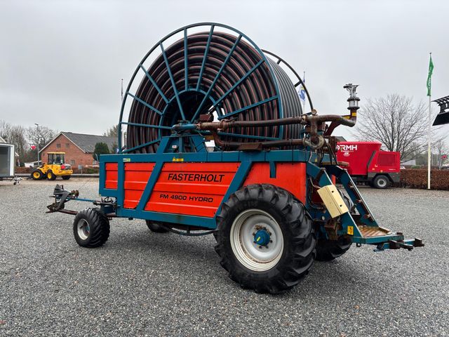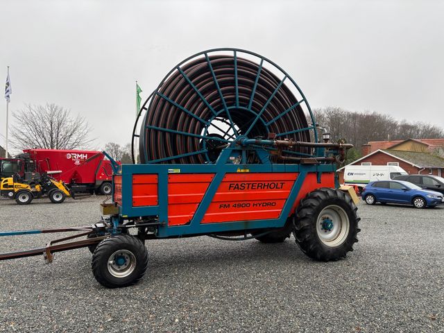 Fasterholt FM 4900 Hydro - 800 x 110 mm. slange - 16,9 x 400/60 x 15,3 hjul - Nyrer Nelson SR 150 kanon - Stop for overtryk - Solceller - Wirehejs af forreste træk - Kørt 2.777 timer - Program regn type 9 - Stige med platform til kanon - Aluminiumsbakke for opbevaring af diverse - Elbremse med træklods og kabel til traktor - Prodsøjer på begge træk - Hydraulisk tvangsstyring af forhjul - Bygget op over kraftig industri bagtøj, sporvidde 210 cm. midt-midt - Dobbeltpumpe så fremtræks hastigheden bliver 1 gear 15-28 m/time 2 gear 25-50 m/time 3 gear 45-90 m/time - Ring for mere info 73820212- Erling.