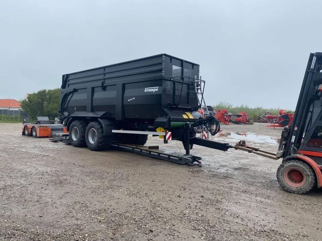 Krampes båndvogn som kan noget andre ikke kan. Den kan læsse grøntsager, kartofler osv af uden at skade dem og uden at skulle tippe. Det er et bånd som læsser af og godset blevet flyttet hen til bagenden. Den kan også læsses den anden vej fra bag enden med halm og kasser. Denne har fået nyt Orginal bånd fra Krampe og kontrol af rullerne i for og bag. Den står nydeligt ude skader. Med arbejds lys og kontrol boks. Den er med combi bremser, luft og hydraulik. Fremført smøre punkter Og ellers alle krampes gode ting!