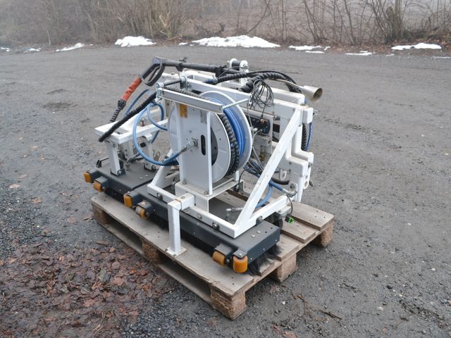 Behandlingsbom til varmtvandsanlæg. Hydraulisk sideforskydning. 120cm i bredden, samt håndlanse monteret på 20m slangerulle For mere info kontakt: Glamsbjerg Maskincenter A/S Mads Madsen, Tlf: 54 55 14 41, Mail: mm@gmc-fyn.dk