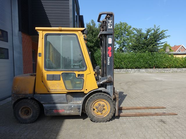 Velkørende 3 tons TCM diesel truck. Monteret med dublex mast og en løftehøjde på 4 meter. Trucken har kørt 9560 timer.