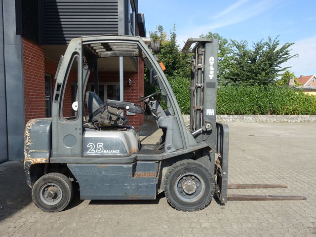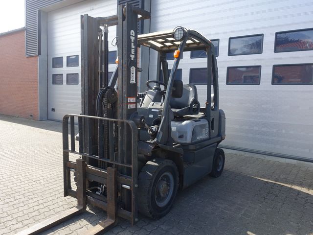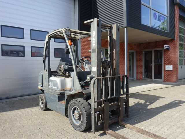 Meget velkørende 2500 kg Nissan diesel truck. Monteret med dublex friløft mast og integreret sideskifte.