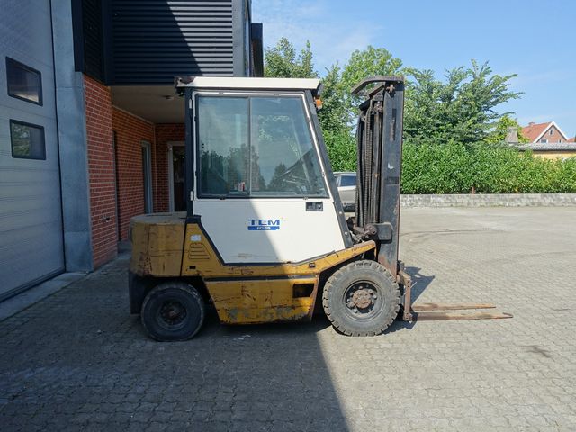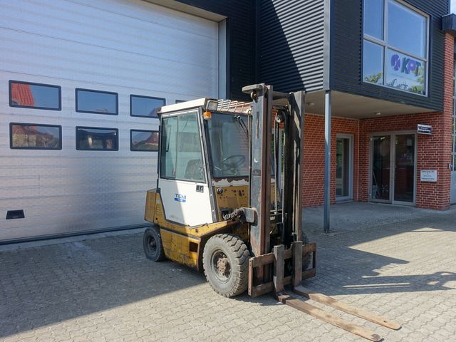 Snild 2500 kg. TCM diesel truck der starter kører og fungere. Timetæller viser 9391 timer. Årgang er estimeret ud fra serienummer da årgang ikke fremgår af maskinen.