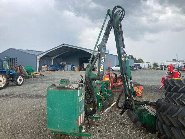 Kraftig hegnsklipper med udskud til rækkevidde vandret på 7,2 m og 8,1 m lodret. Maskinen er udstyret med flg. udstyr. Rotor Flex, dobbelt drejeled m. 180° drej af klippehoved og 180° drej af klippevinkel inkl. Auto Flex • Danfoss joystikbetjening elektrisk proportional • 80 hk Load Sensing hydraulikanlæg med oliekøler • Mekanisk parallelføring af armen • Flydestilling klippevinkel • 155º hydraulisk drejning af arm med Powerstyring • Trepunktstabilisering • PTO, 220 l hydraulisk olie og LED trafiklys • 460 kg kontravægt. Maskinen står med en FR122 slagleklipper. Derudover kan vi tilbyde et bredt udvalg i Greentec redskaber i tilkøb.