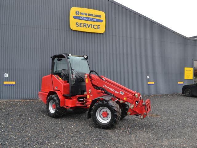 Teleskophjul læsser fra Schäffer, teleskop armen gør det muligt at løfte, løftearmen helt op til 4740 mm. Den frit ophængt bagaksel sikre at den står sikkert og godt fast selv i vanskeligt terræn. Kompakt, kraftfuld læsser fra Schäffer. Hydrostatistik automotiv, HFT (High Traction Force) Transmission: Hydrostatistik automotiv, HFT (High Traction Force) Bremsesystem: Olielamel bremse Oliemængde: 64 l/min Tiplast lige: 2.660 kg Aksler: Originale Schäffer-aksler, 6 bolts fælge Planetslutdrev og automatisk differentialebremse, Pendel på bagaksel Brændstof: 45 L Hydarulik olie: 50 L Udvendig venderadius: 3980mm Indvendig venderadius: 1740 mm