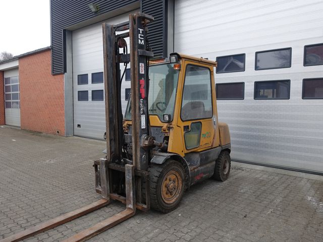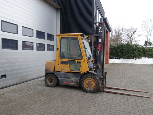 Solid og driftssikker 3 tons TCM dieseltruck med lukket kabine Perfekt til lager, produktion, landbrug eller entreprenørarbejde, hvor der stilles krav til styrke og pålidelighed. Duplex mast Ekstra hydraulikudtag 1,60 m lange gafler Højde over tårn: 2,60 m Driftstimer: 9.560 timer