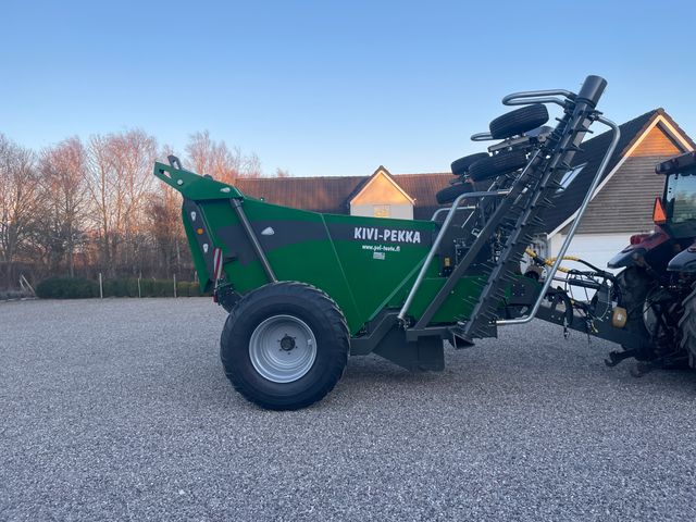 Ny model Kivi-Pekka 6 m med hydraulisktræk af siderotorer, 700/50-26,5 hjul, bremser, 5 m3 kasse, flex drum ( op til Ø 50 cm sten )