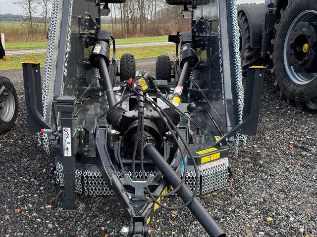 Pronar afpudser/brakslåmaskine med 3 rotorer med 6 knive HARDOX (twin cut) på hver. Klippeskjold, knive og skive er HARDOX stål. Der er påmonteret spredeskærm så den ikke laver striber. Klippehøjde fra 25 til 400 mm. 6 stk store støttehjul 10/75x15,3 Spørgsmål, ring til Lars Søndergaard 91893823-Whatsapp +4591893823 Vejl.pris 218670,-