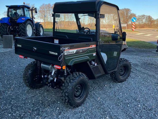 Den nye Corvus diesel er endelig kommet hjem!!!! og denne gang med en kabine hvor støjniveau gør det muligt at samtale under kørslen!!! Maskinen er udstyret med følgende: - 800ccm, 3-cyl Yanmar Diesel motor, 22hk - 4x4, differential spærre på bagaksel - ESP - Hydrostatisk CVT Transmission - Servostyring - Manuel tippelad (hjulpet af gasdæmper) (kan laves elektrisk) - Beskyttelsesplader af undervognen - Fuld kabine, med ventilations/varmeanlæg - Lys i kabinen - Vinduesvisker - Kopholder Kan selvfølgelig leveres med Traktorplader (40 km/t)