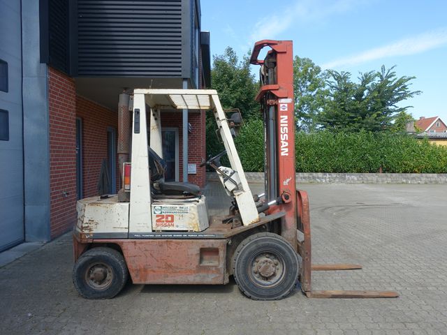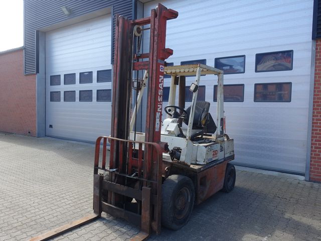 Ældre 2 tons Nissan dieseltruck. Monteret med dublex mast. Starter, kører og fungerer.
