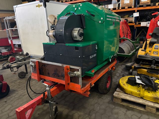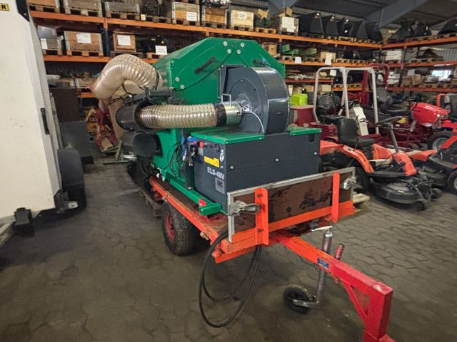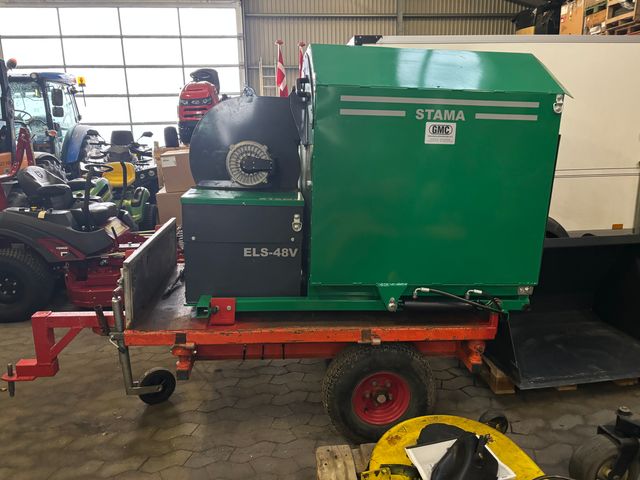 Elektrisk løvsuger med hydraulisk tip/tømning, monteret på vogn. Fjernbetjening til start/stop af enheden. Maskinen har ikke været brugt meget. Mere info på 54555629 - Ivan